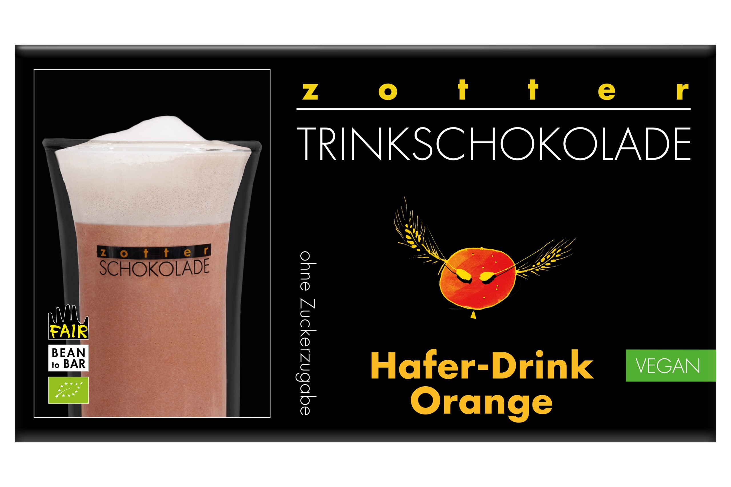 ZOTTER – Trinkschokolade Hafer-Drink Orange, ohne Zuckerzugabe